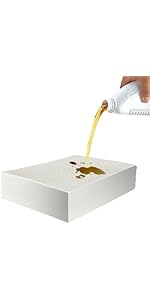 Oil Spill Mat protects your garage floor from leaks and spills. The absorbent fabric contains liquids and the waterproof backing stops motor oil, brake fluid, gasoline, coolant, and prevents these liquids from soaking through. When your oil mat gets dirty, simply scrub with soap, hose off, and hang dry. Do not bleach. This mat is durable, reusable, and easy to clean. Proudly Made in the USA, Phthalate and BPA free, and made from over 50% recycled fibers.