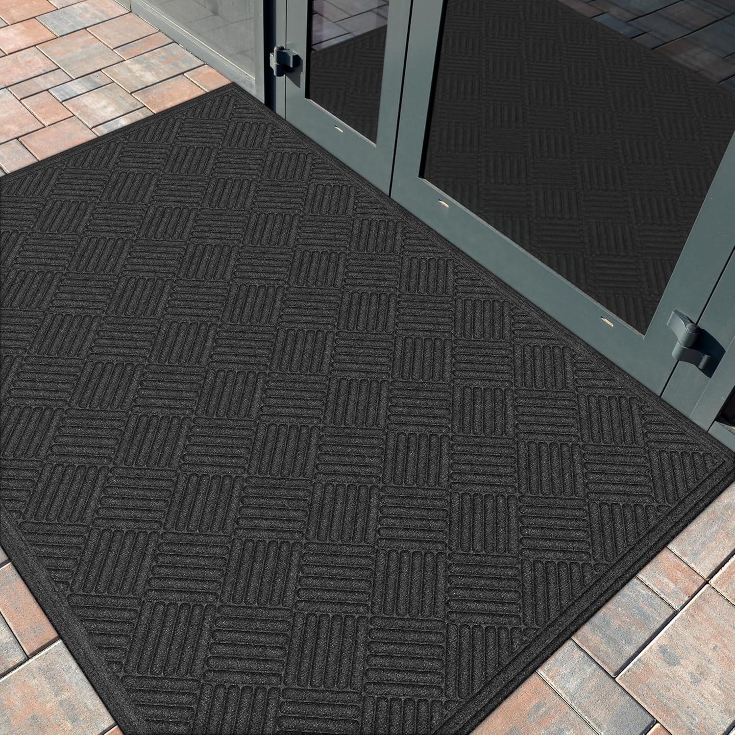 Apache Mills Textures 4' x 6' Basketweave Heavy Duty Onyx Door Mat – Weather & Stain Resistant, Non-Slip, Durable Outdoor Mat, Made in USA – Superior Scraping Entrance Mat for Home & Commercial Use