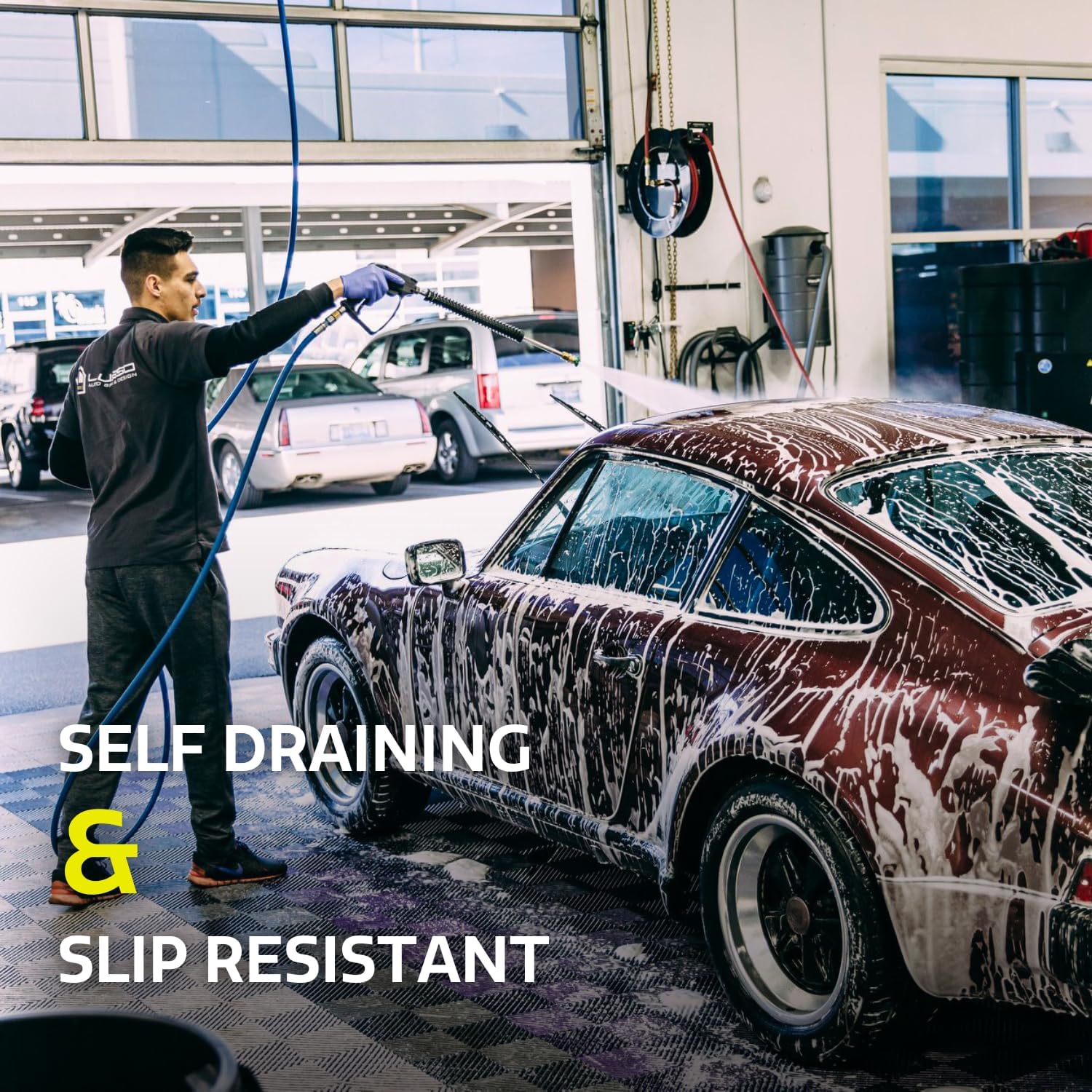 Big Floors RaceDeck Free-Flow Interlocking Garage Flooring Tiles, Non-Slip, Self-Draining, Heavy-Duty, High-Impact Copolymer, Easy Install (Black, 48 Pack of 12 x 12" Tiles)