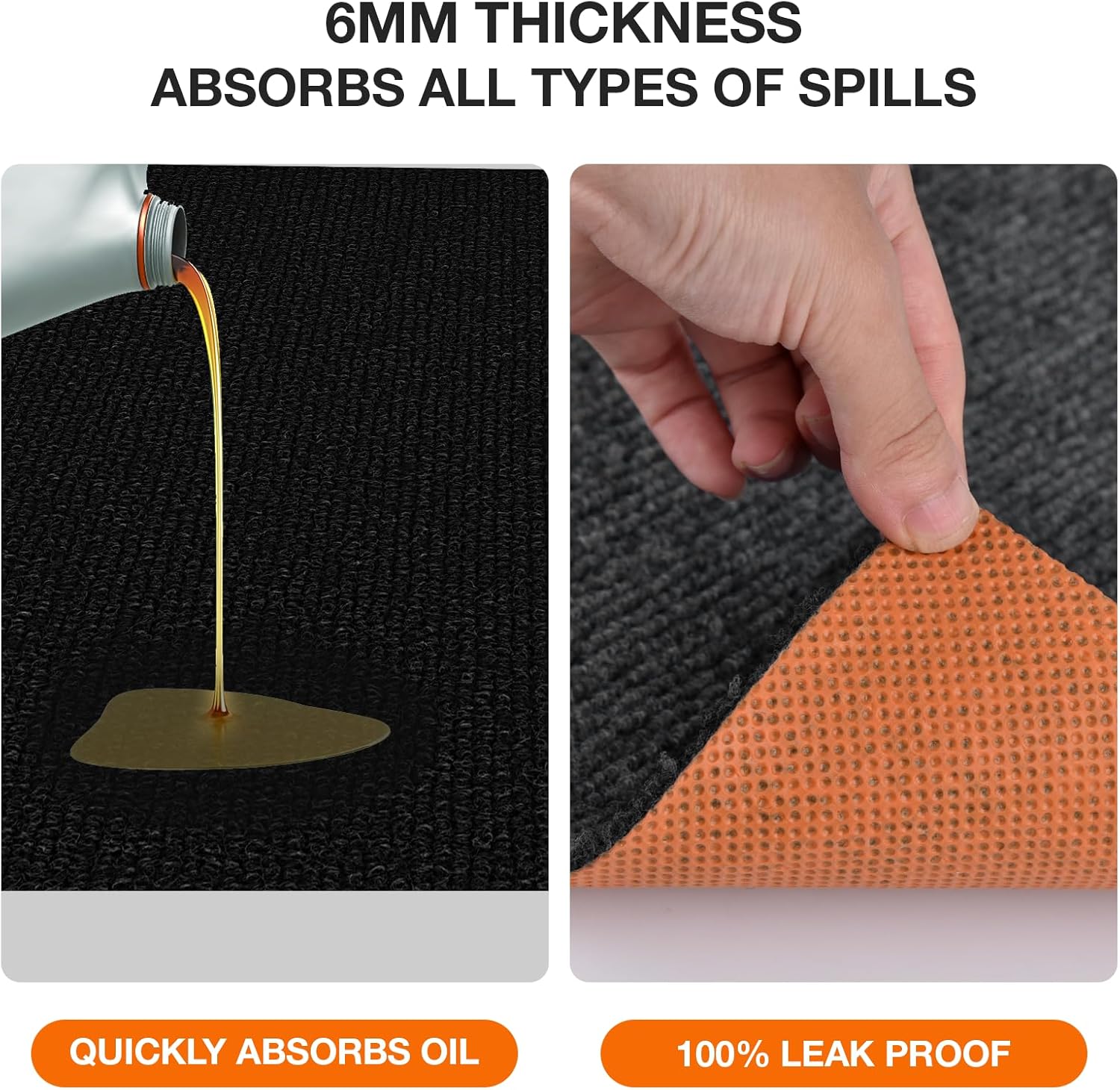 Inch, Heavy Duty Oil Resistant Garage Car Bottom Mat, Reusable Floor Protector, 1/4 Inch Thick Waterproof Rubber Backing, Oil Absorbent (Dark Gray) (60 * 72)