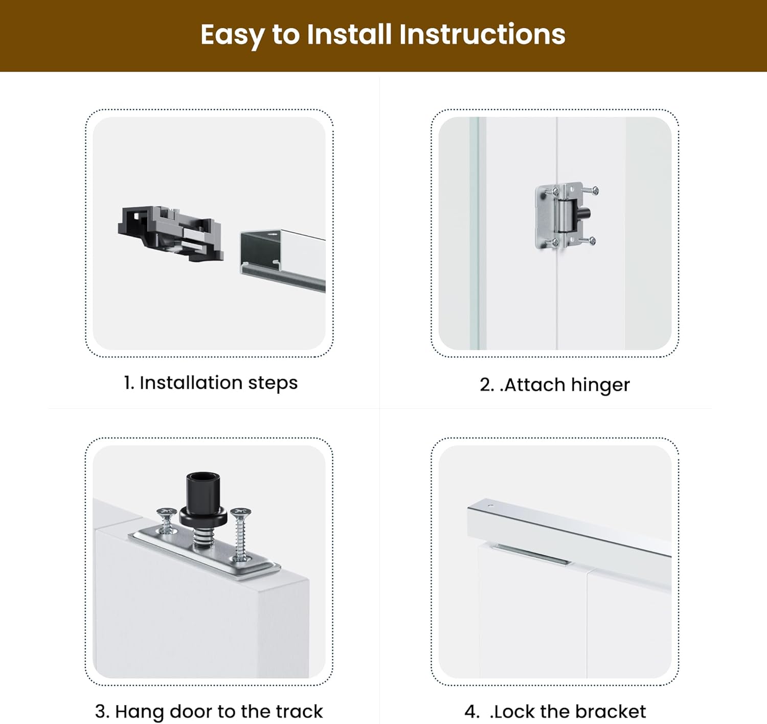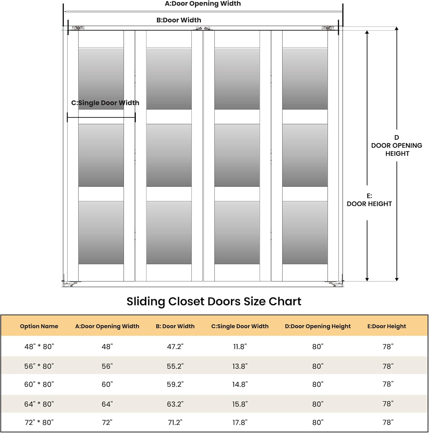 SMARTSTANDARD Bifold Door, for 48"x 80" Opening,Tempered Frosted Glass Closet Folding Barn Door with Hardware Kit, Water-Proof PVC Surface,Easy Install,White