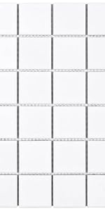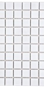 Square Tiles in solid, matte and gloss colors are precisely arranged in an interlocking mesh to create a seamless installation. This minimalist geometric porcelain mosaic tile is unique yet simple enough to match any design, from traditional style renovations to modern home projects. Its waterproof, ADA-compliant, and frost-resistant characteristics make square mosaic tiles an ideal choice for interior and exterior floor and wall installations, including kitchen backsplashes, bathroom showers, and accent walls. This square tile can be used as a whole sheet or cut into smaller strips as a decorative piece.